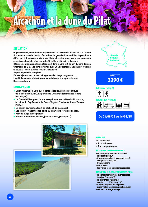 ARCACHON ET LA DUNE DU PILAT 2390 € 14 vacanciers Séjours à la mer Voir plus