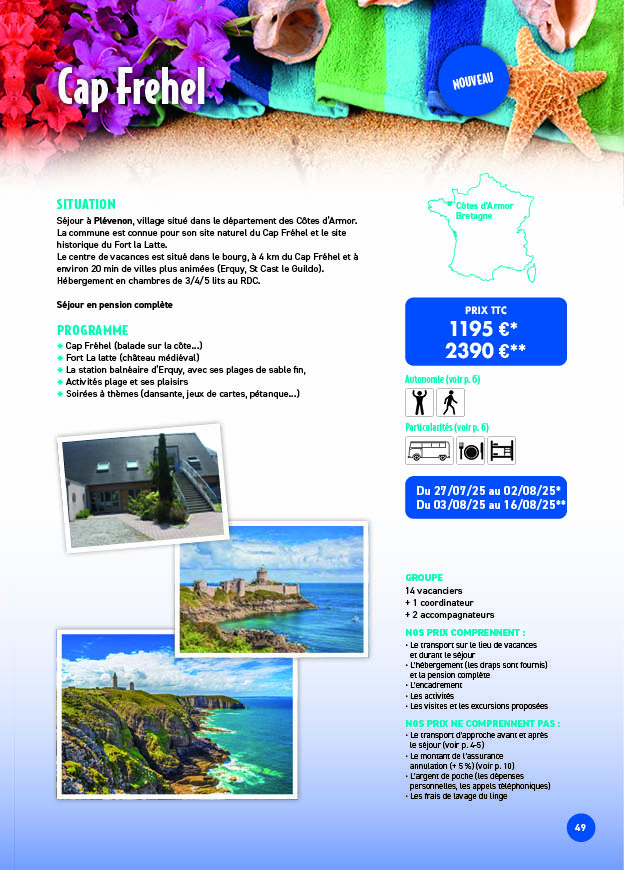 CAP FREHEL 2390 € 14 vacanciers Séjours à la mer Voir plus