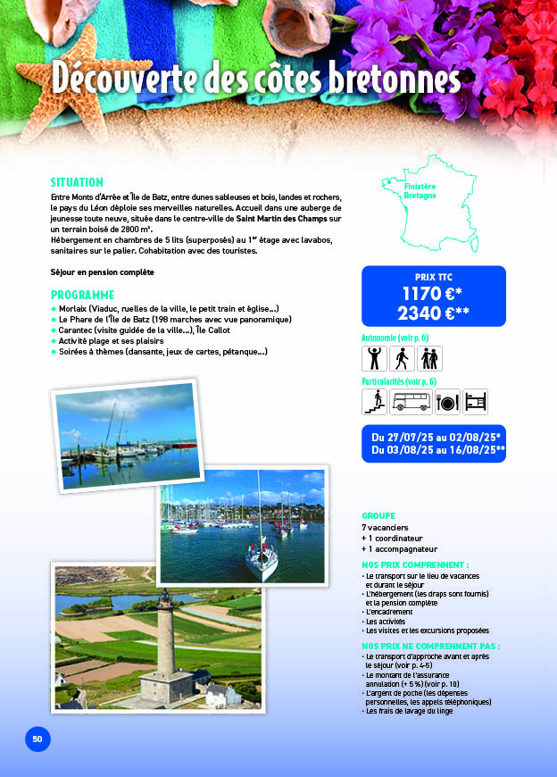 DECOUVERTE DES COTES BRETONNES 2340 € 7 vacanciers Séjours à la mer Voir plus