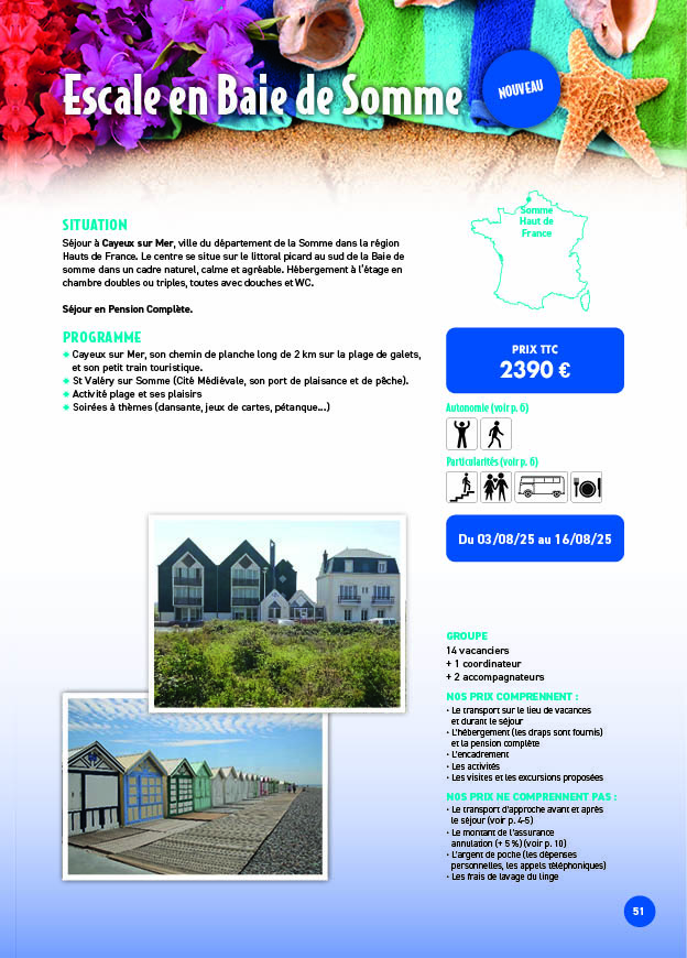 ESCALE EN BAIE DE SOMME 2390 € 14 vacanciers Séjours à la mer Voir plus