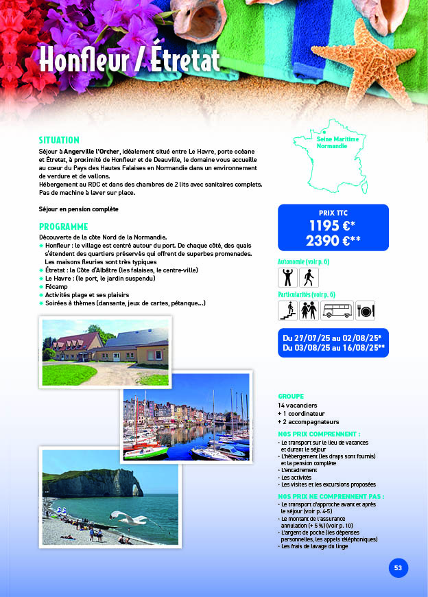 HONFLEUR/ETRETAT 2390 € 14 vacanciers Séjours à la mer Voir plus