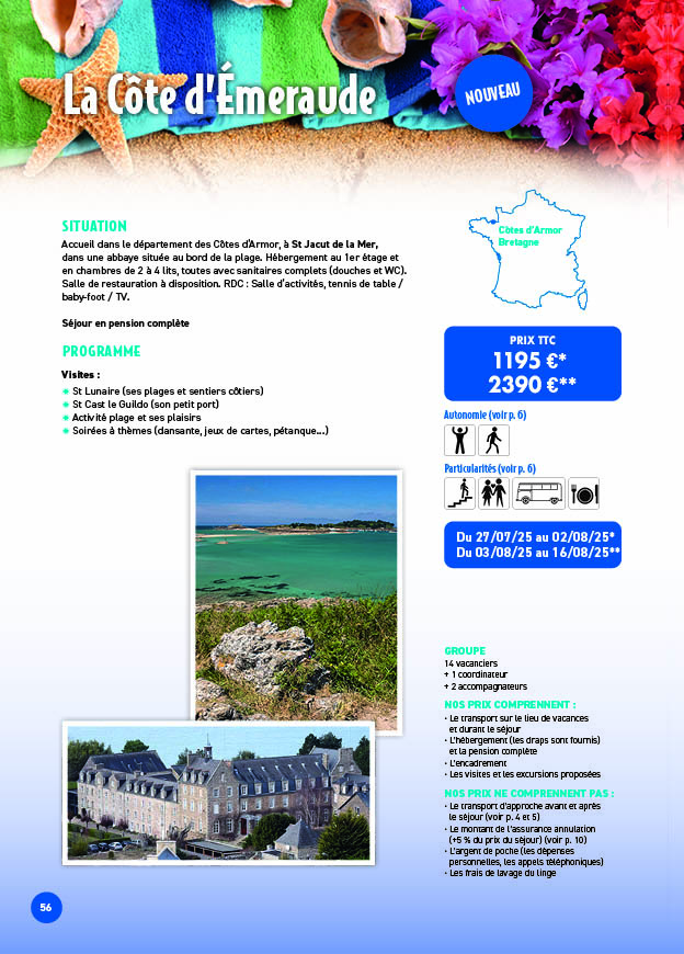 LA COTE D'EMERAUDE 2390 € 14 vacanciers Séjours à la mer Voir plus