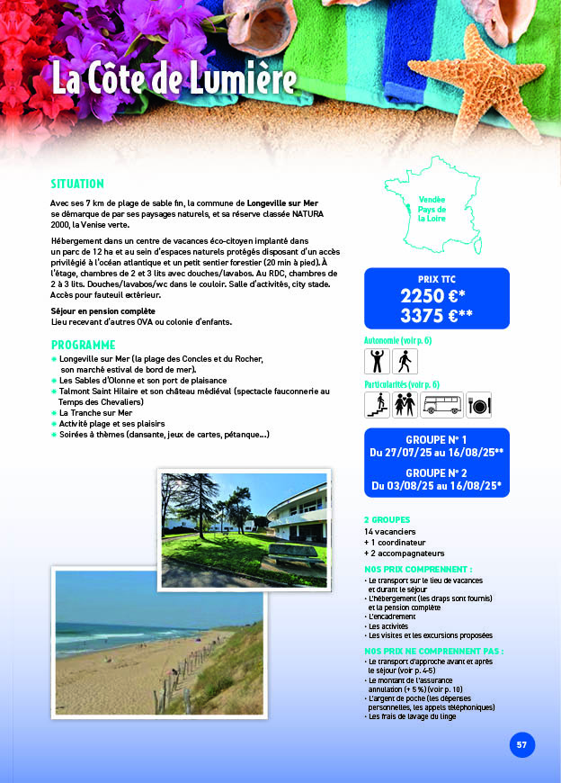 LA COTE DE LUMIERE 2250 € 14 vacanciers Séjours à la mer Voir plus