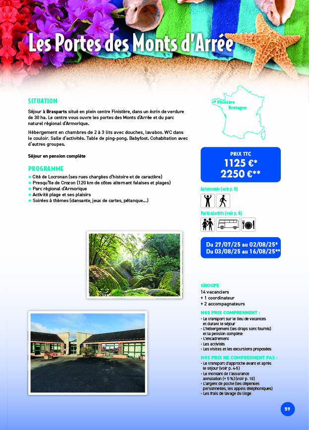 LES PORTES DES MONTS D'ARREE 2250 € 14 vacanciers Séjours à la mer Voir plus