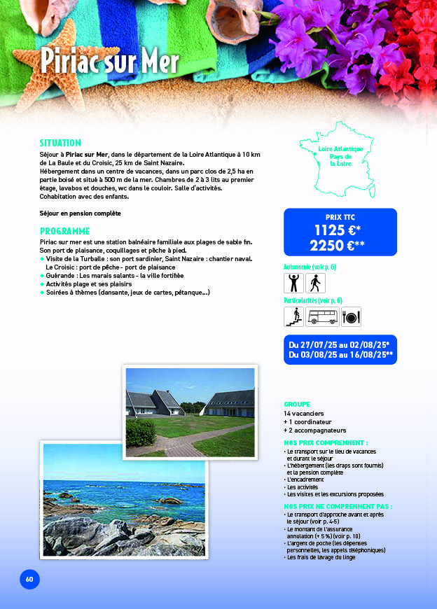 PIRIAC SUR MER 2250 € 14 vacanciers Séjours à la mer Voir plus