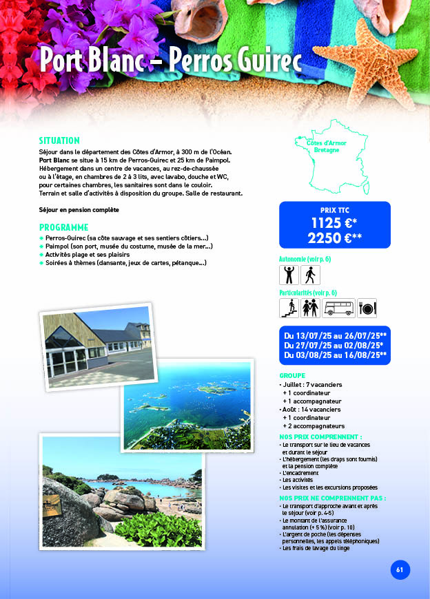 PORT BLANC/PERROS GUIRREC 2250 € 14 vacanciers Séjours à la mer Voir plus