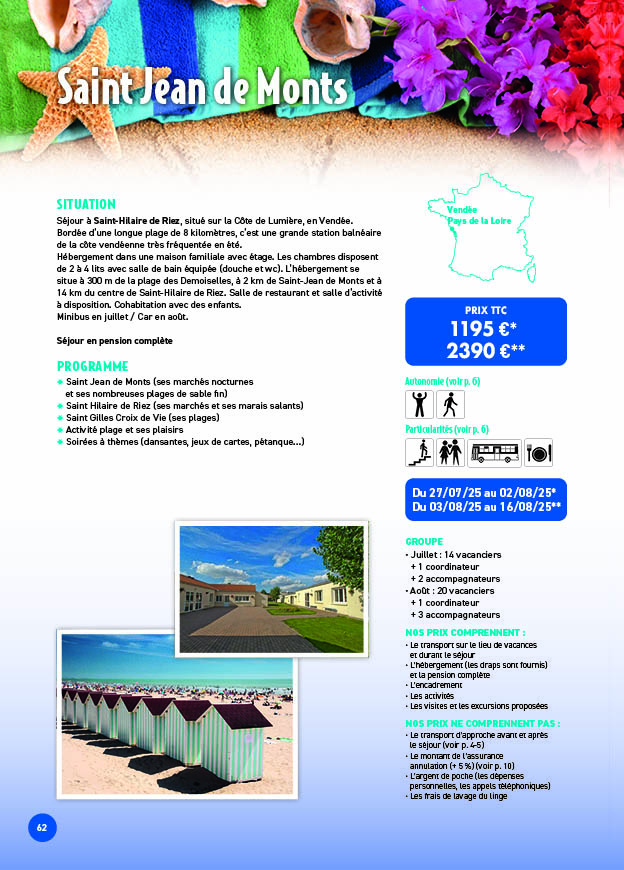 SAINT JEAN DE MONTS 2390 € 20 vacanciers Séjours à la mer Voir plus