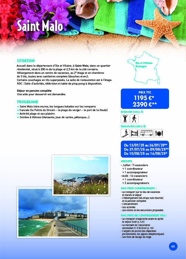 SAINT MALO 2390 € 14 vacanciers Séjours à la mer Voir plus