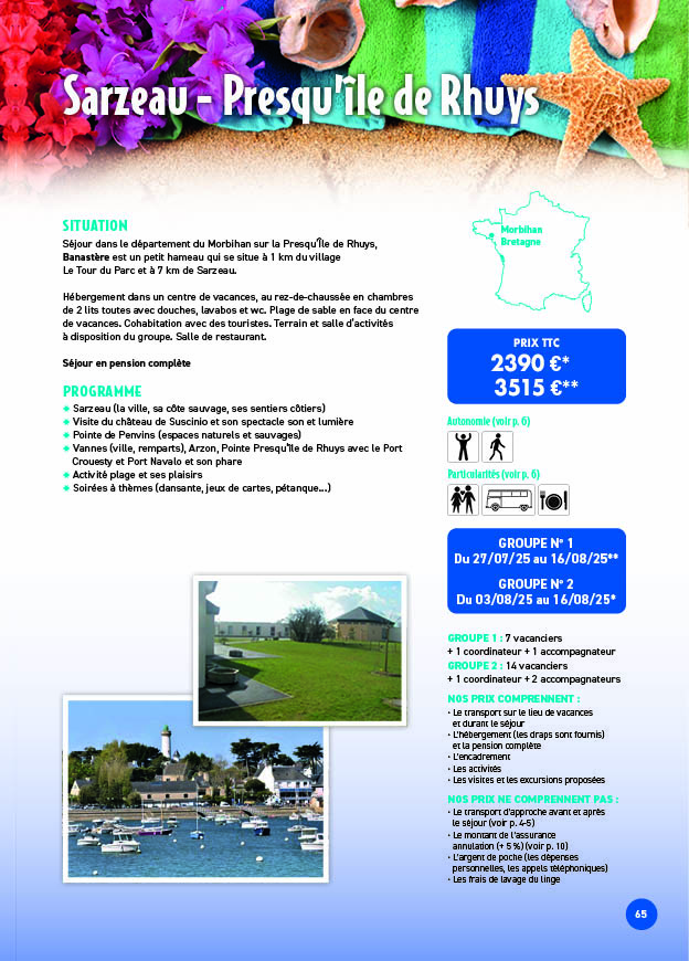 SARZEAU/PRESQU'ILE DE RHUYS 2390 € 14 vacanciers Séjours à la mer Voir plus
