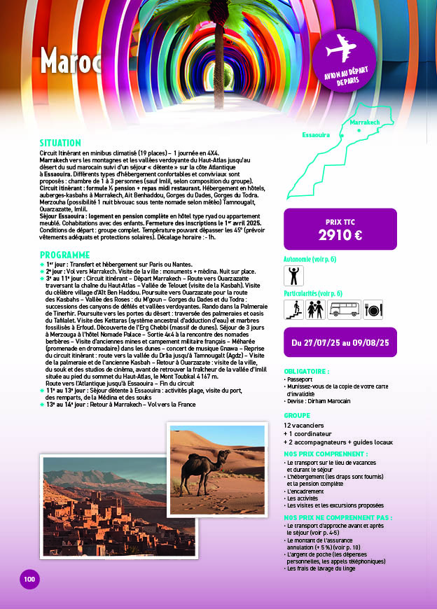 MAROC | 2440 € | 7 vacanciers | ![]() |