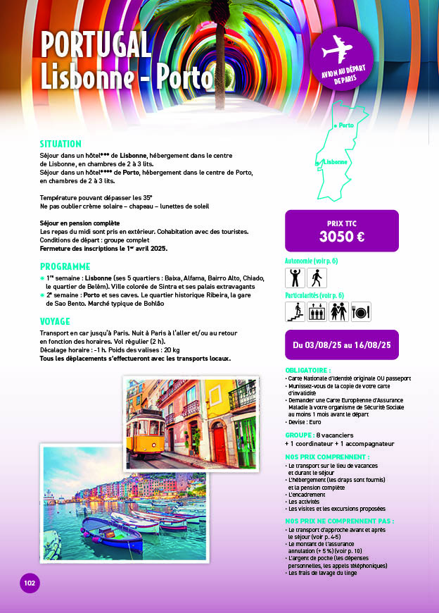 PORTUGAL - LISBONNE/PORTO | 3050 € | 8 vacanciers | ![]() |