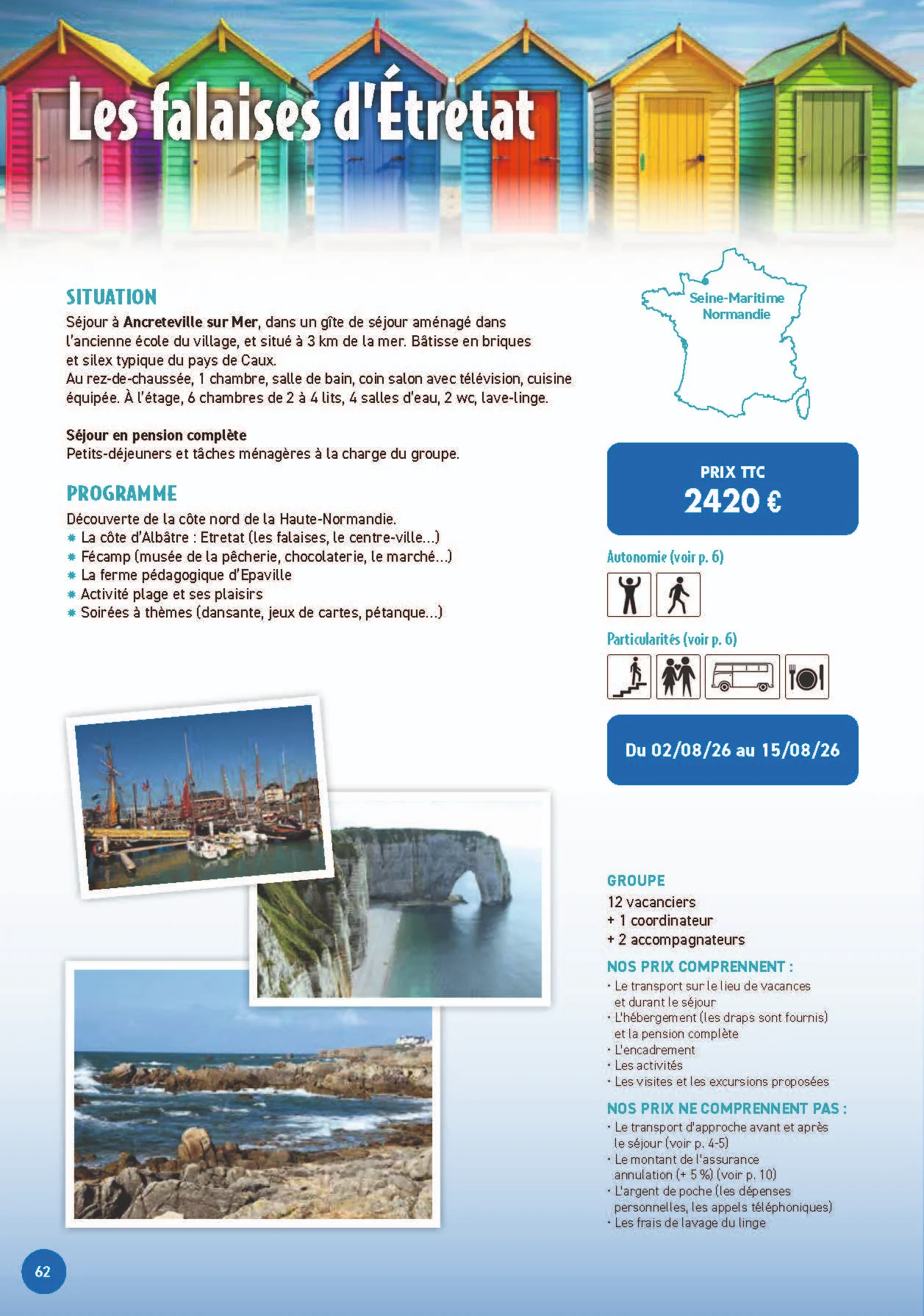 | LES FALAISES D'ETRETAT | 2420 € | 12 vacanciers | Voir plus | |