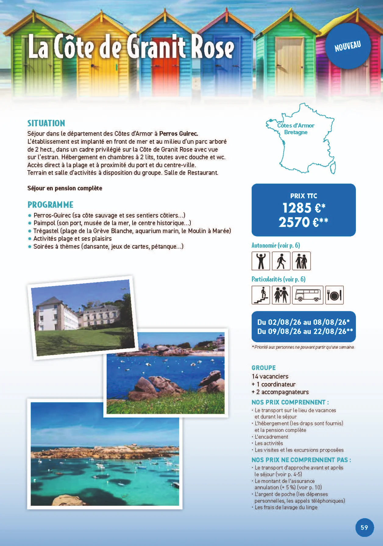 | La Côte de Granit Rose | ->1285 €* (Du 02/08/26 au 08/08/26*) ->2570 €** (Du 09/08/26 au 22/08/26**) |