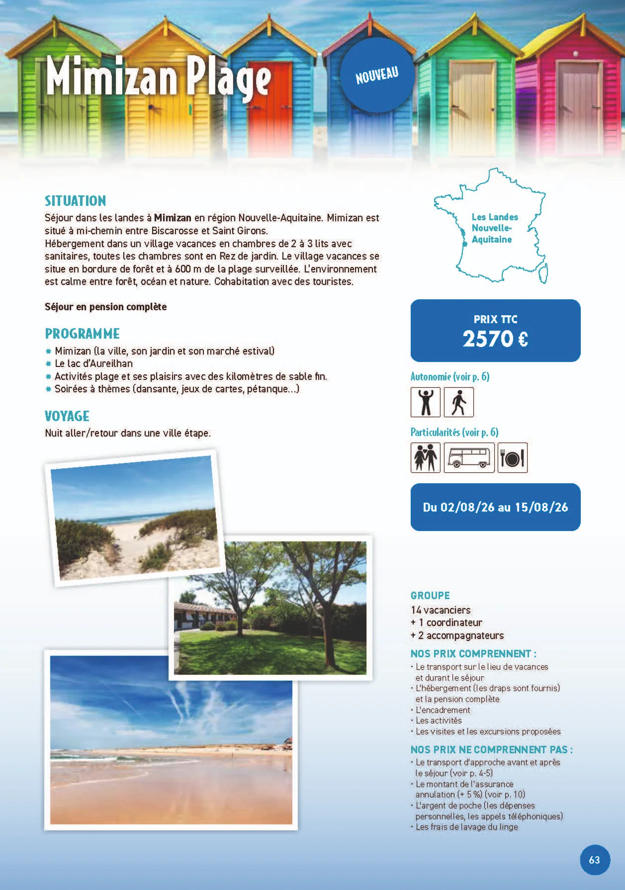 | Mimizan Plage | 2570 € | 14 vacanciers | Voir plus | |