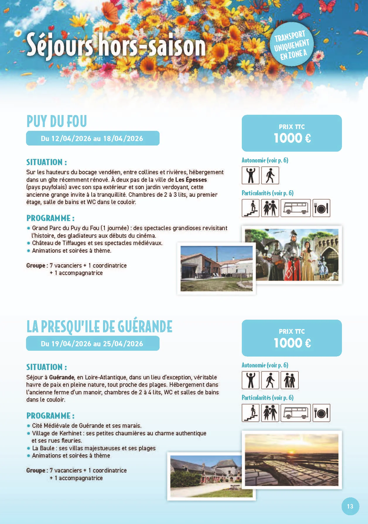 | PUY DU FOU | 1000 € | 7 vacanciers | Voir plus | |